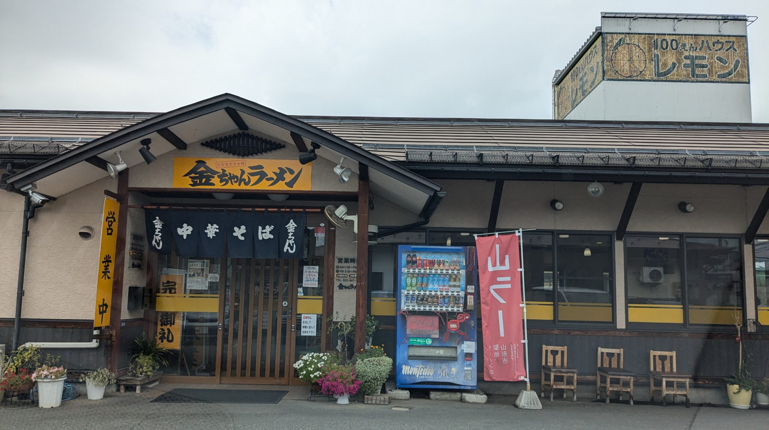 中華そば屋こやいの店舗外観。赤いのぼりとレトロな外観が特徴のラーメン店 ラーメン・そば